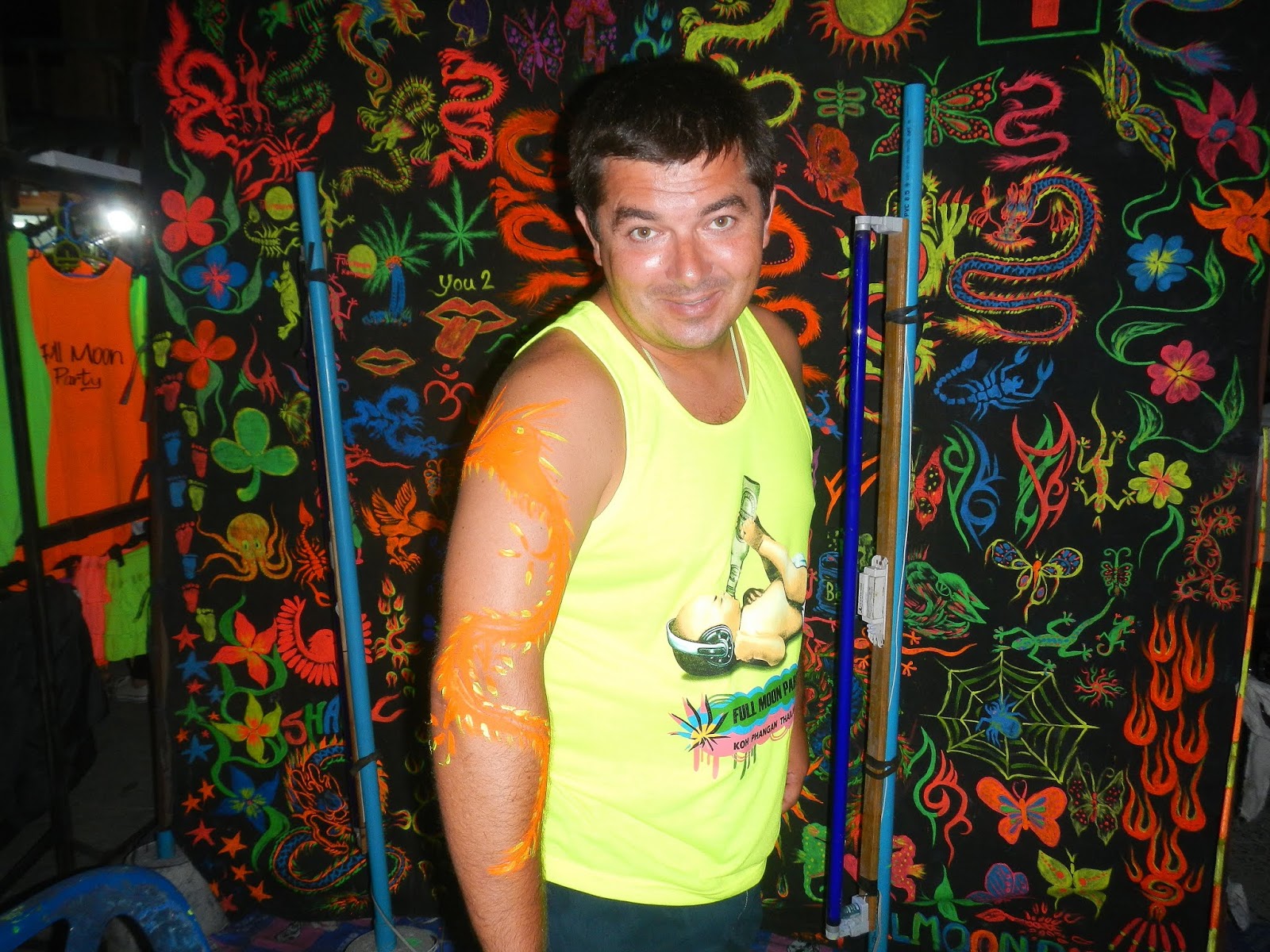 Full Moon Party was really small - when you read about it, it sounds like something great and original but it was just a beach party the only difference is that people wearing flashy t-shirts with fluorescent tattoos and drinking the liqueur from the buckets rather then a beer. I was expecting some stages with DJ something big but it was just the bars having different parties plus this jumping over the jumping rope on fire. Still nice party but compering to the Boracay Full Moon was not that huge