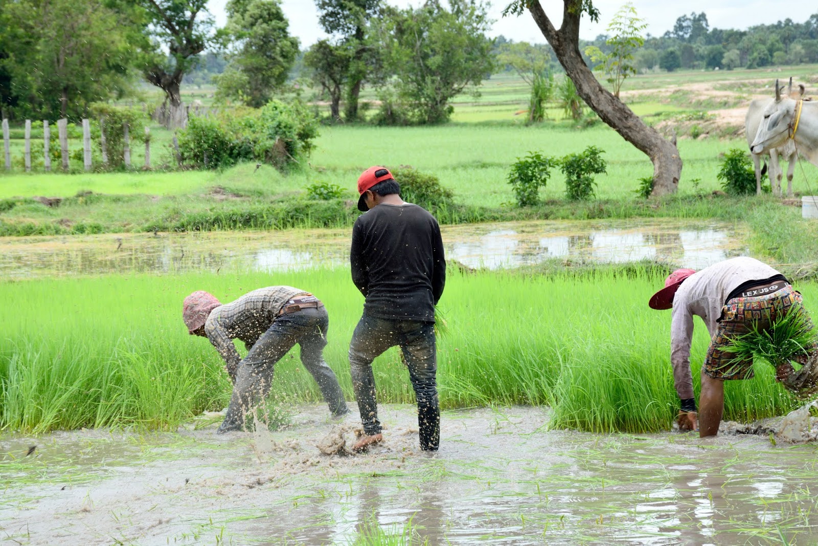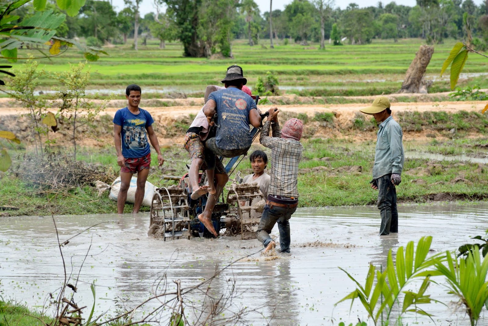 Najbardziej podobało mi się na polu ryżowym obserwując jak pracują. Zauważyłem grupkę ludzi pracujących na polu niedaleko od drogi więc zapytałem mojego kierowcy czy moglibyśmy tam podejść. Parę minut później już tam byłem - buty całe przemoczone ale co tam